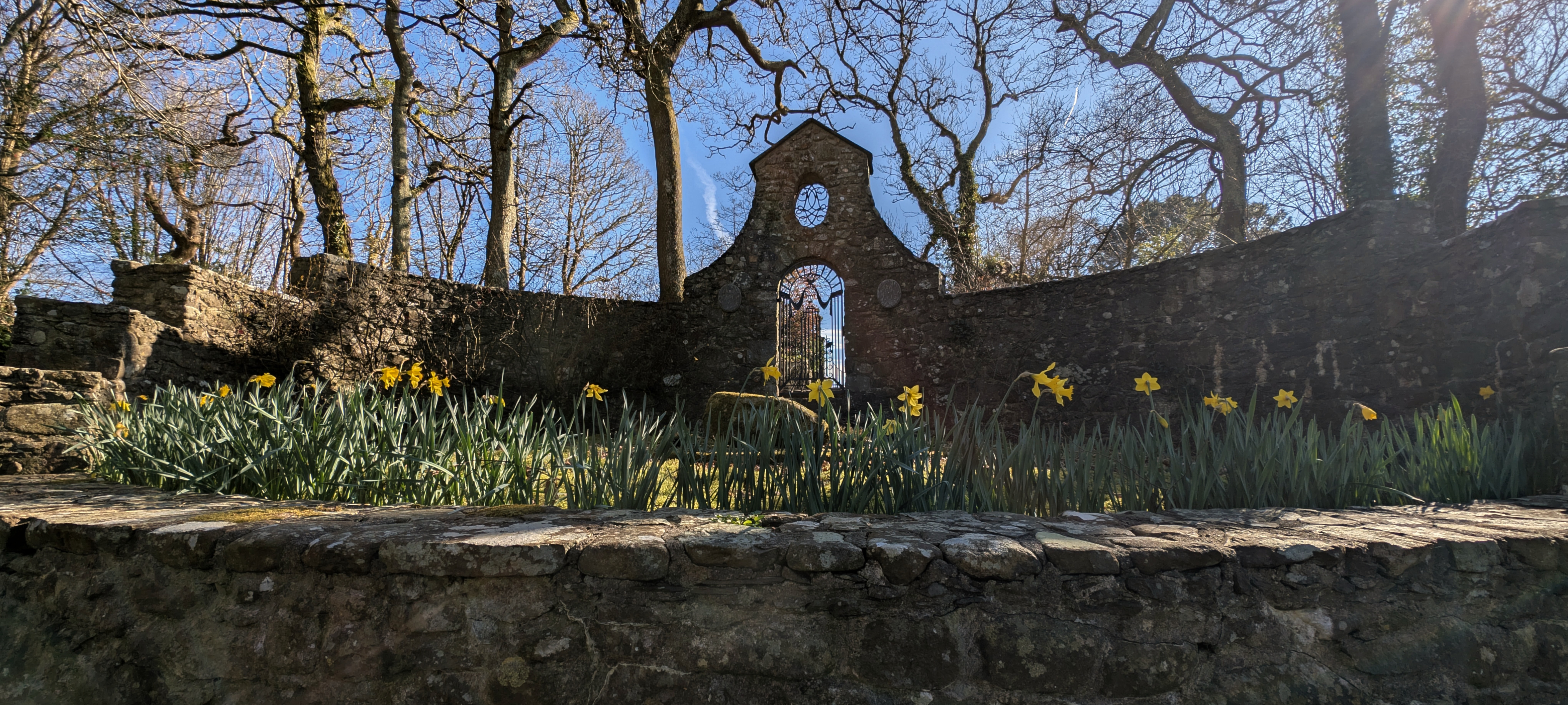 Shortly afterwards Clough Williams-Ellis was commissioned by Frances to design the stone wall around the grave and later an englyn by his nephew W.R.P. George was added.